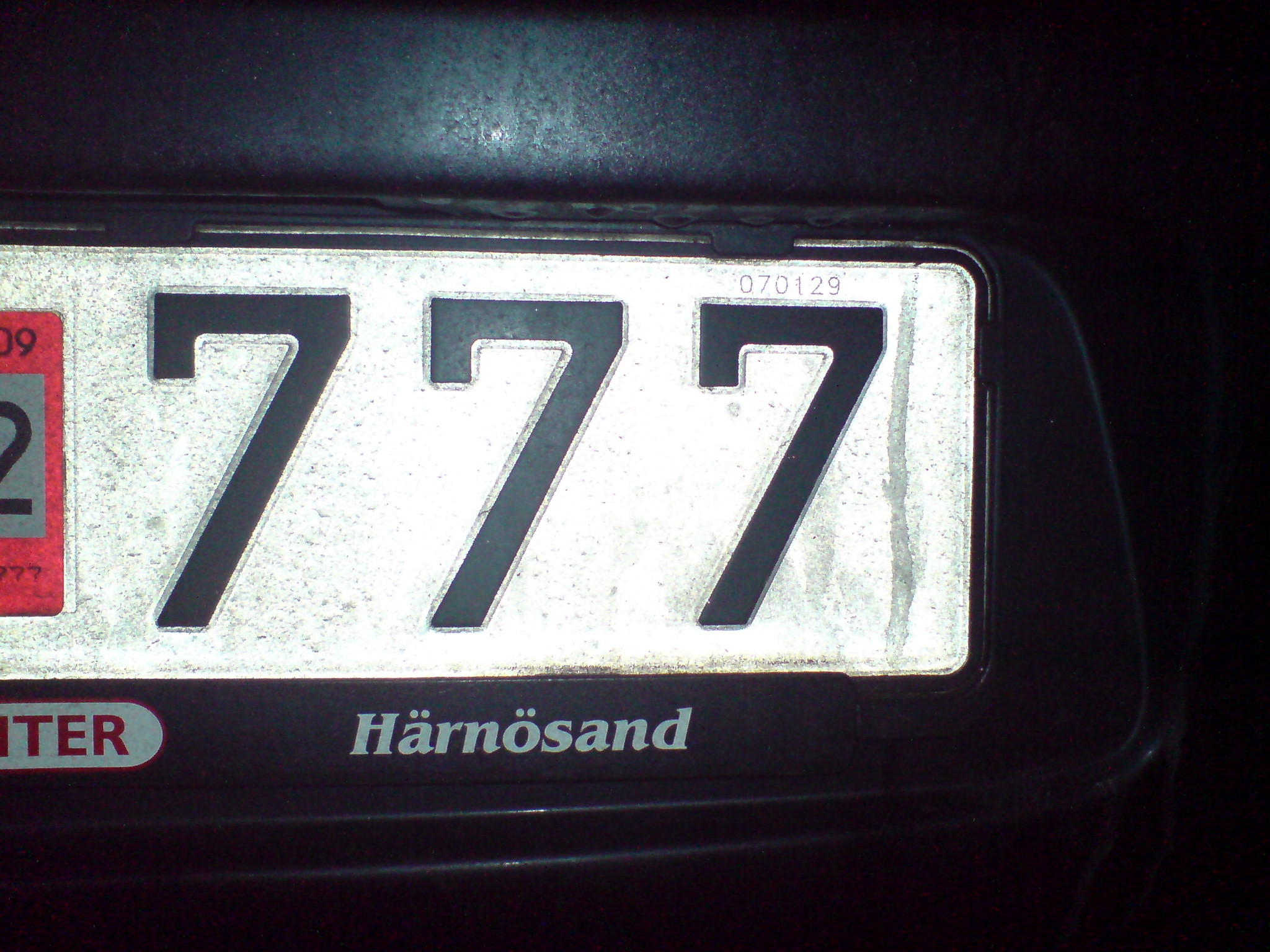 Sen när jag kom ikapp bilen såg jag registreringsnumret! Wow, det är alldeles för sällan som jag kommer ikapp en trippelsjua. Nu kommer tjejerna att bli grymt avis :D Det kan ju inte slå fel, en öppnad dörr och en trippelsjua. Dagen kommer att slå alla rekord!